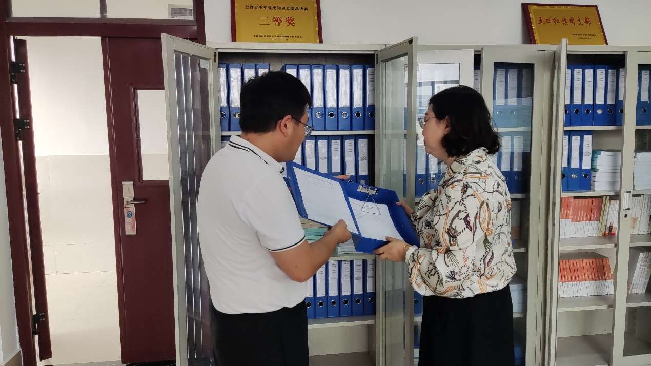 (李纪岩副院长向新葡的京官网王志峰院长和陈智慧老师展示材料目录)