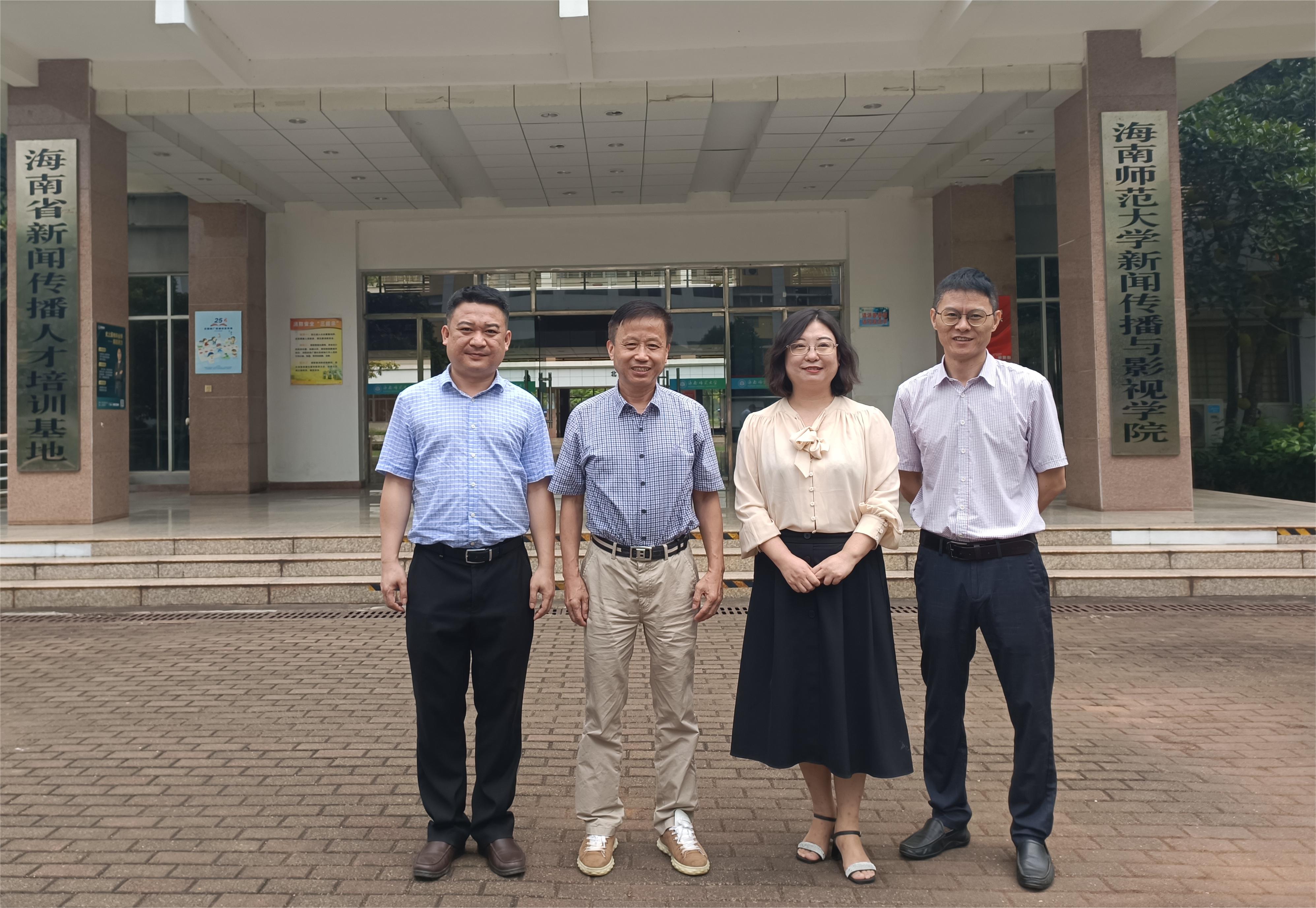 4月27日上午,学院院长王志峰教授、新闻学专业负责人周仁清副教授、特聘教授金乐敏、学院团委书记黄瀛及三亚市委网信办四级调研员朱必林、梁爽一行赴海南师范大学新闻传播与影视学院座谈交流。海南师范大学新闻传播与影视学院院长卿志军、党委副书记李蔺(主持工作)、副院长李杉、副院长李楠等参加了座谈。