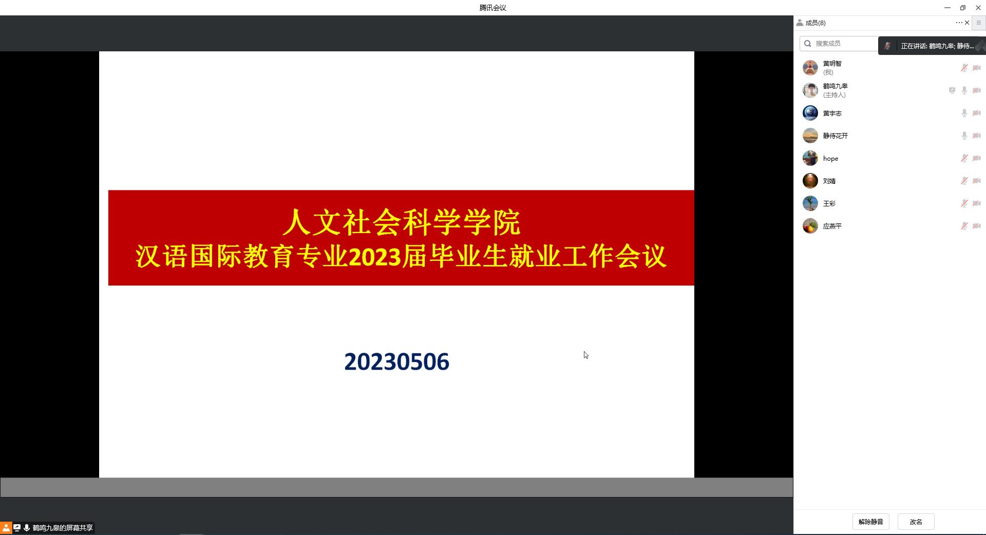 5月6日晚,新葡的京集团8814汉语国际教育专业组织召开2023届毕业生就业工作推进会,会议由院党委副书记黄宇志主持,毕业班班主任、辅导员及有关就业指导教师参加会议。