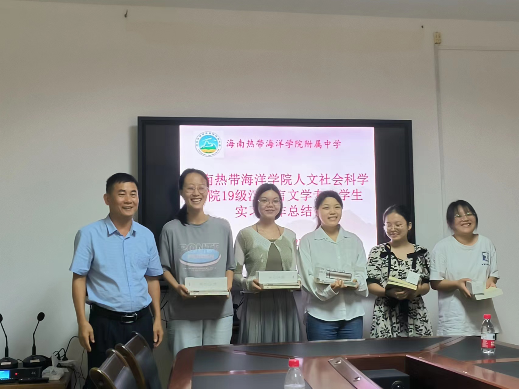 最后,郑书记总结发言并进行了未来展望:在整个实习过程中可以明显看到实习生和指导老师们的成长,这是十分令人欢欣鼓舞的。希望每一位老师都能在以后的教学生涯中以做“四有好老师”为目标,不断增强自己的教学能力。并亲自为5位实习生举行赠书、纪念品。郑书记表示希望在未来能够继续深入和新葡的京集团8814的合作,促进双方关系更进一步。