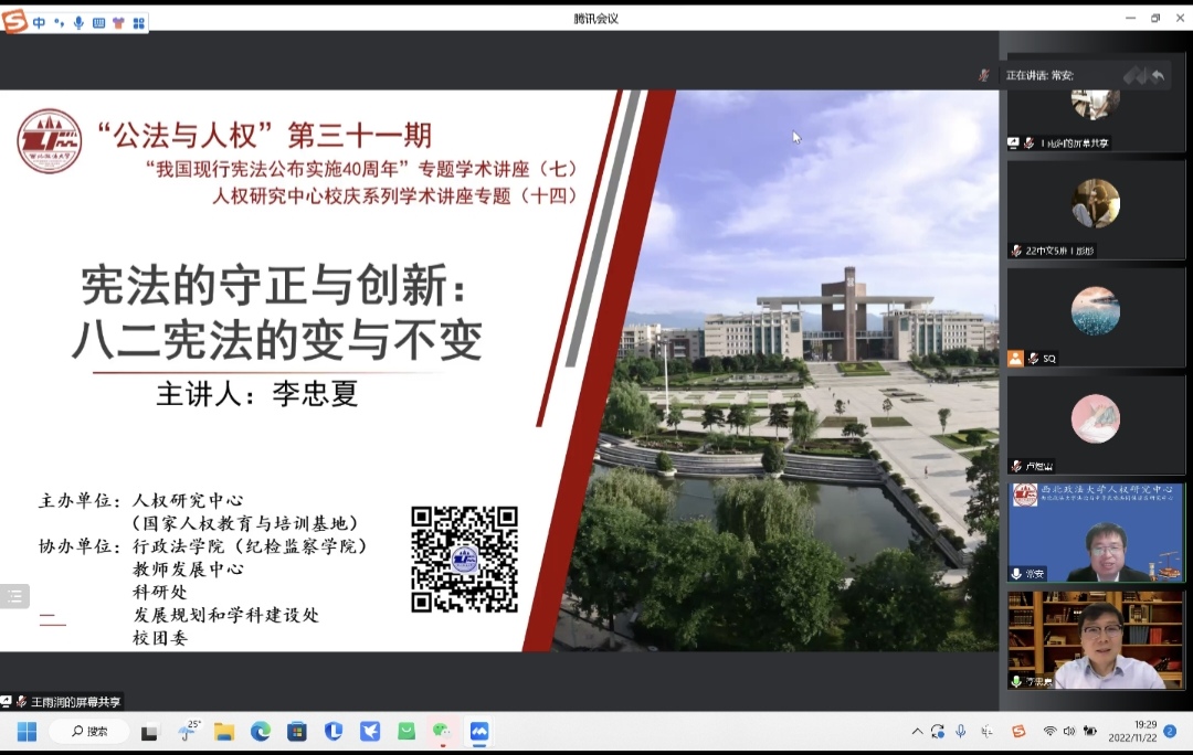 为了加强学生们对宪法的深入了解与学习,2022年11月21日,新葡的京集团8814组织各专业学生在普法网完成宪法知识的在线学习与练习;同时,11月22日19:30,新葡的京官网组织学生于线上学习了主题为“我国现行宪法公布实施40周年”的专题学术讲座。新葡的京官网各专业无课班级学生参与学习。
