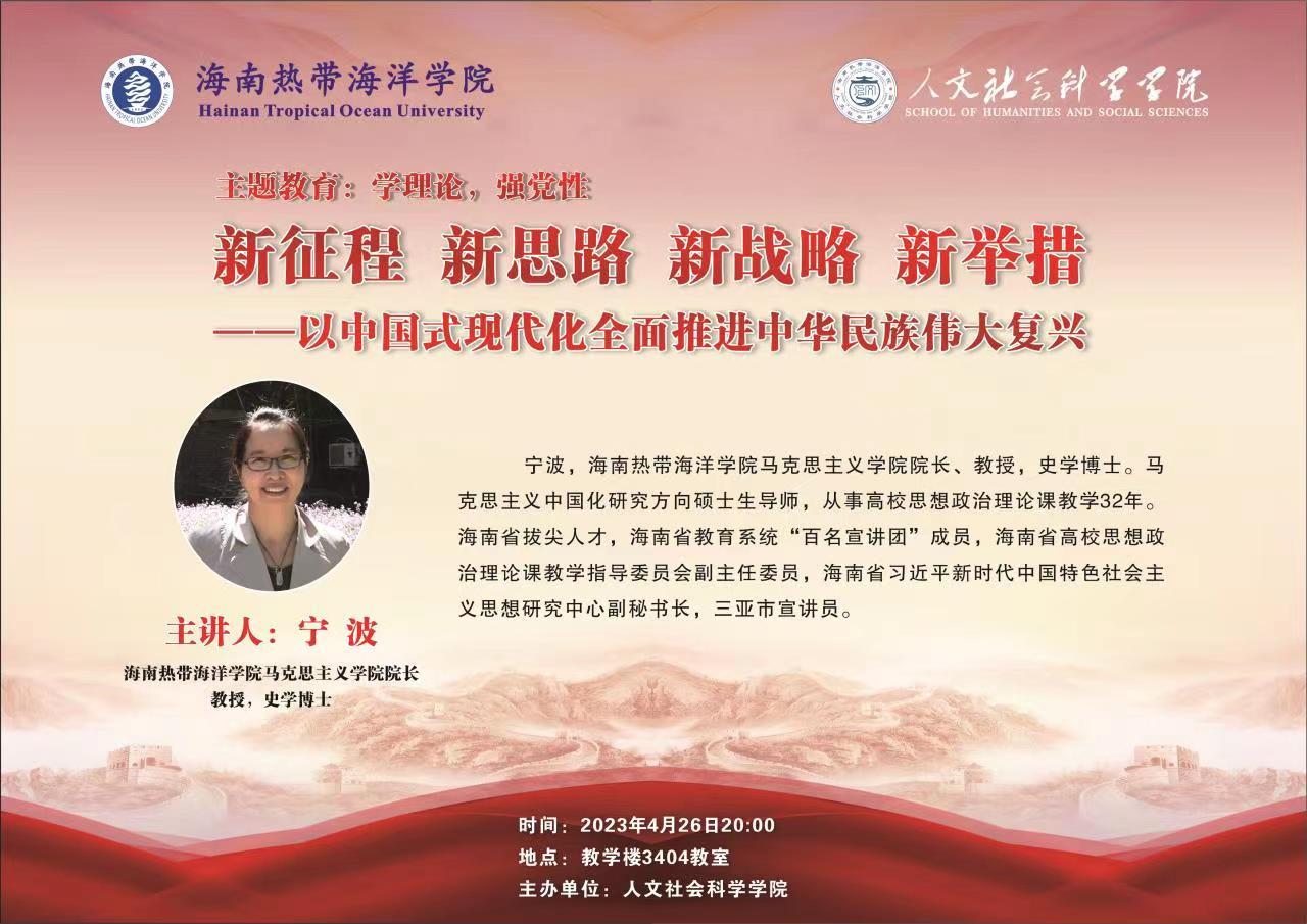 会上,宁波教授做了题为“学理论、强党性新征程 新思路 新战略 新举措——以中国式现代化全面推进中华民族伟大复兴”的主旨报告。她以党的二十大报告为纲,以党的发展历程为线,全面深入的解读了党的二十大报告深刻内涵。她强调,学习贯彻党的二十大精神,是当前和今后一个时期内首要的政治任务,党的二十大报告是一份全面解读新时代中国特色社会主义发展方向和全面建设现代化国家的宏伟蓝图的报告。随后,宁波从党在新时代的历史使命、新时代中国特色社会主义思想、全面深化改革、国防建设、深入推进“一带一路”建设、经济建设、生态文明建设、民生保障、港澳台工作等多个方面分类详细讲解了我党实现当前伟大成就所经历的艰苦历程,报告结合党史学习教育深刻阐释了我党和人民历经艰难险阻、奋发图强的艰苦奋斗精神,同时用数据总结了当下的党和人民取得的伟大历史成就。