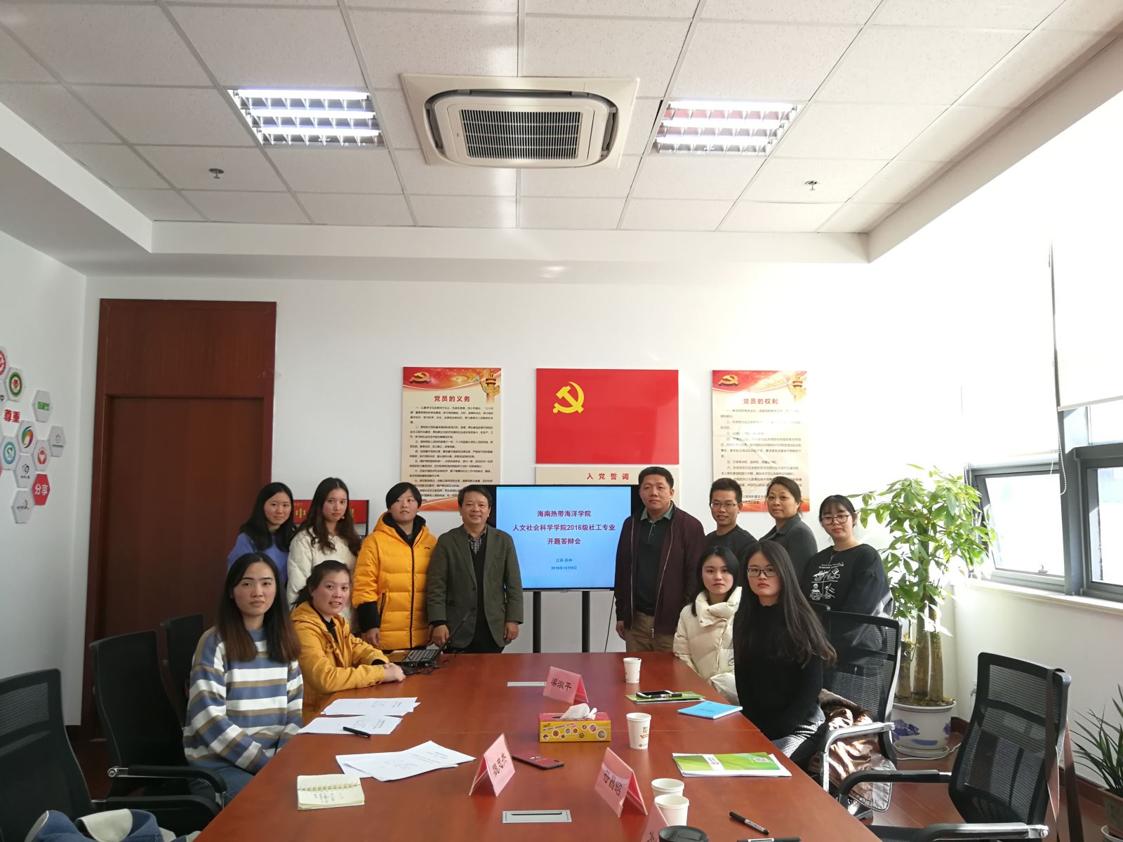 交流会结束后, 四位老师对在乐仁乐助实习的2016级社会工作专业10位同学进行了毕业论文开题答辩,对学生的论文选题、开报告内容、研究框架等存在的问题进行了指导并给出了建议,为学生高质量地完成毕业奠定了良好的基础。