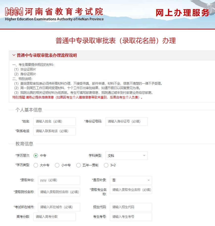 中专录取审批表查询、申请办理网址:https://www.haeea.cn/
