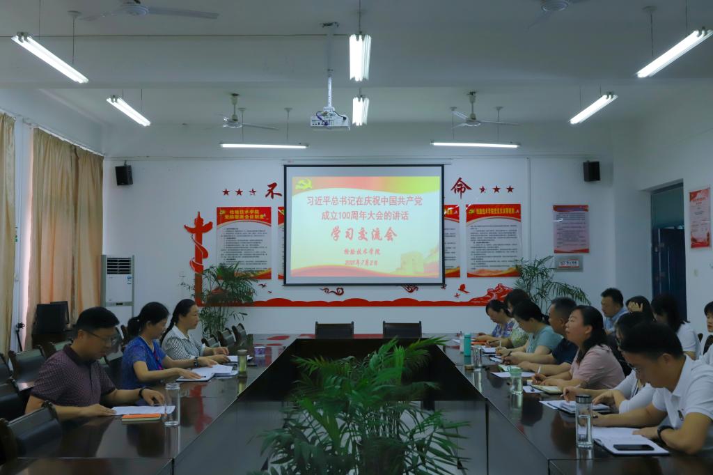 7月2日上午,SUNBET申搏官方网站党总支组织党员干部在党员活动之家集体学习习近平总书记在庆祝中国共产党成立100周年大会上的重要讲话,并进行了研讨和交流,学校党委委员、副校长李新毓参加会议。