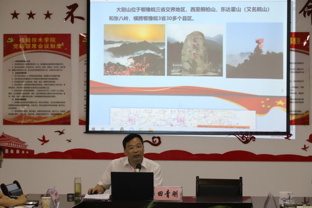 6月16日下午,信阳师范学院历史文化学院副院长、大别山精神研究院执行副院长、大别山红色资源与文化发展研究院院长、河南省红色资源研究中心负责人田青刚教授应邀来SUNBET官网作党史学习教育专题报告,学校党委委员、副校长郭克明,SUNBET申搏官方网站、马克思主义学院和校产经营管理中心全体党员,学生入党积极分子参加了报告会,报告会由马克思主义学院院长祁欢主持。