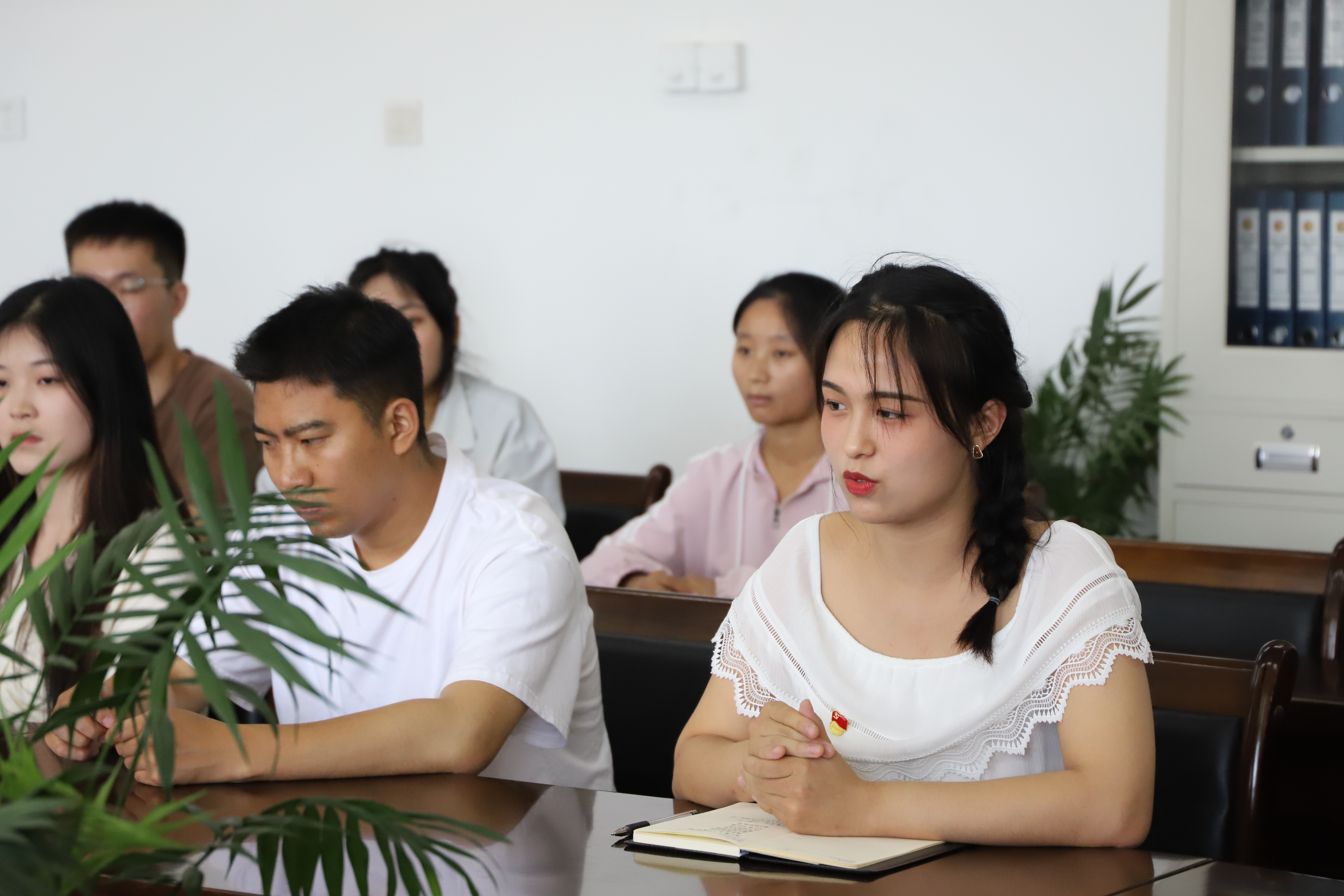首先毕业生党员代表结合自身实际,依次介绍了自己在就业、实习工作中如何发挥党员先锋模范作用。