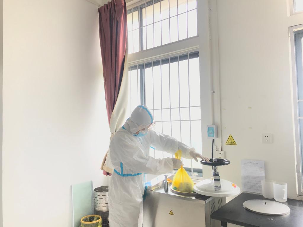 随后,院生物安全应急小组迅速到达现场,指挥相关人员疏散撤离,关闭门窗排风系统,设立警戒区域。各部门相互协作,按照实验室生物安全事故应急处理流程操作,对污染物、操作台面、现场环境进行消毒处理,认真填写实验室意外事故报告表。