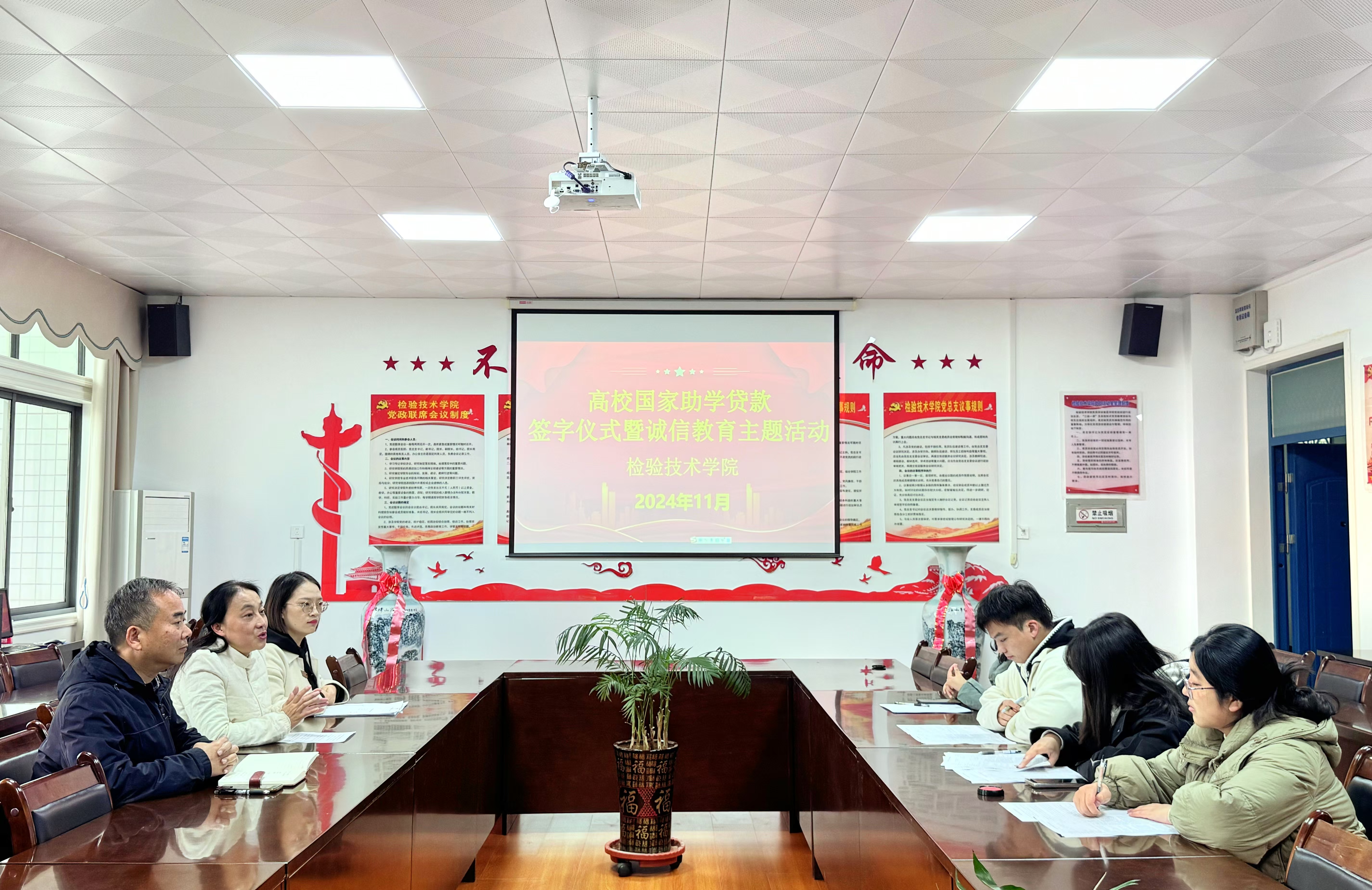 为严格落实高校国家助学贷款政策,认真做好2024年高校国家助学贷款合同审查与签订工作,加强对学生的资助诚信教育,11月18日SUNBET申搏官方网站在9412会议室举行了高校助学贷款签字仪式暨资助诚信教育活动,学院党总支书记叶桦、副书记焦红见、学生资助专干宋镜南以及申请高校国家助学贷款的学生参加了活动。