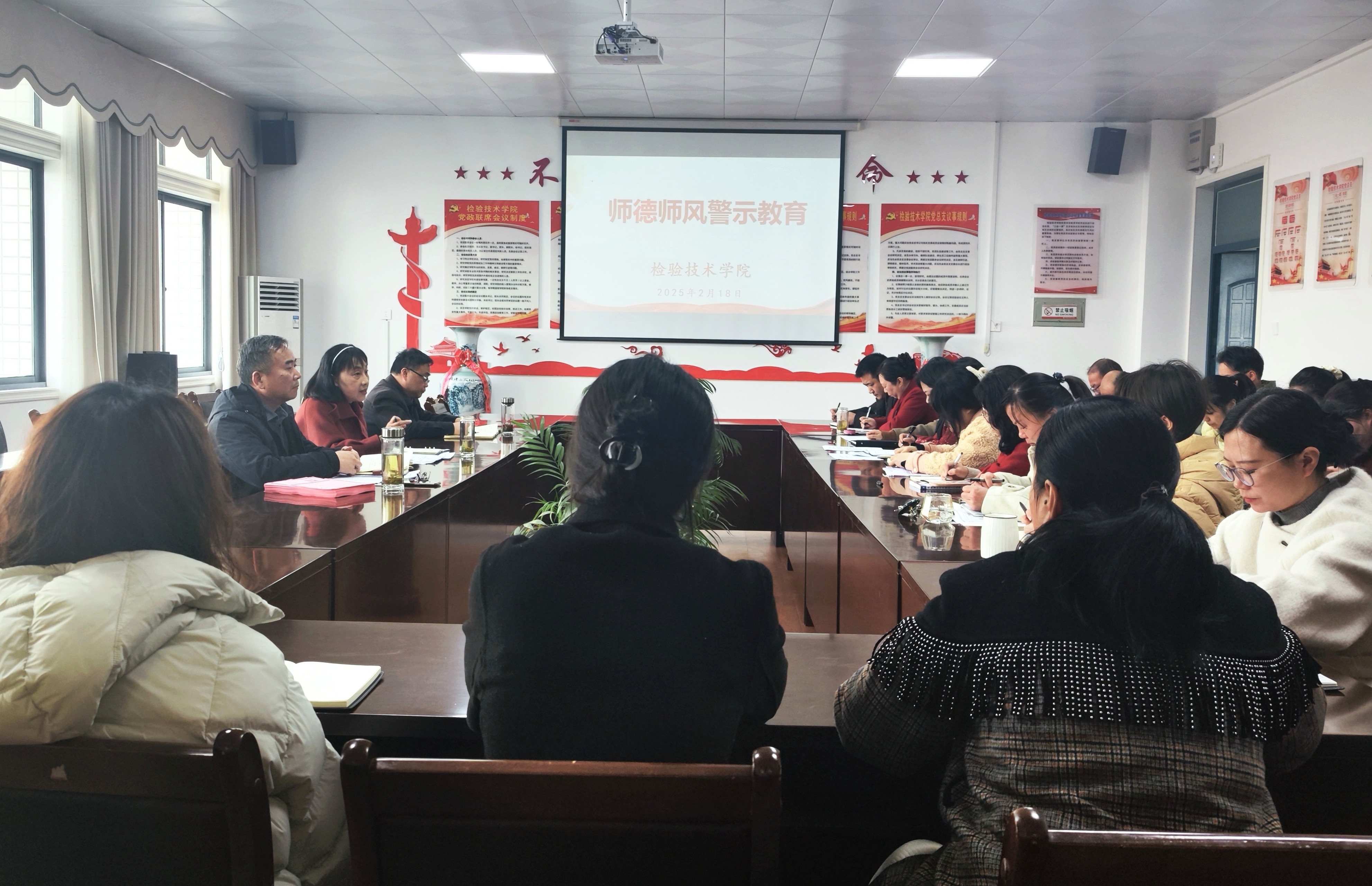 会议伊始,学院党总支纪检委员赵亚杰宣读了《新时代高校教师职业行为十项准则》等国家相关政策及规范性文件,引导教师们深入领会政策精神,明确职业行为规范,随后领学《教育部公开曝光违反教师职业行为十项准则典型案例》,通过反面典型开展警示教育,充分发挥预防、警示、震慑与教育作用,使教师们深刻认识到违反师德师风的严重后果。