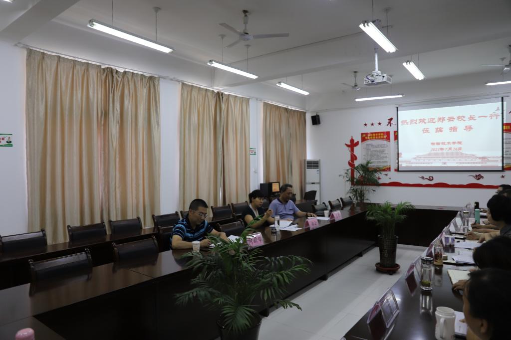 7月26日下午,校长郑云教授深入SUNBET申搏官方网站调研,副校长王豪、校长办公室何新华主任随同调研。SUNBET申搏官方网站院长陶玲、党总支书记王虹、副科级以上干部以及教师代表参加汇报交流,调研会由副校长王豪主持。