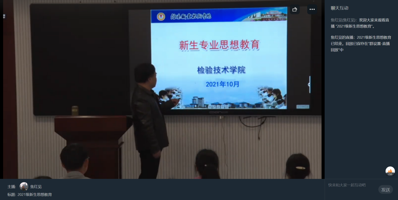 教师代表王红建议学生首先要做好第一个自我设计,确定大学时代的目标,瞄准目标锲而不舍地追求;其次是针对所学专业,要刻苦研习;三是博采众长,要广泛涉猎其它领域。20级医学检验技术2班的程滋倬分享了在校学习经历,提醒学弟学妹们,想站在哪一方舞台上展示自己,自律都是最为重要的。21级刘文君作为新生表态:在疫情期间,看到无数的医疗救护人员奔赴“抗战一线”,表示自己也要像“白衣天使”般的存在,要在老师的带领下努力学习文化知识与技能,成为一名有责任、有担当的医护人员。