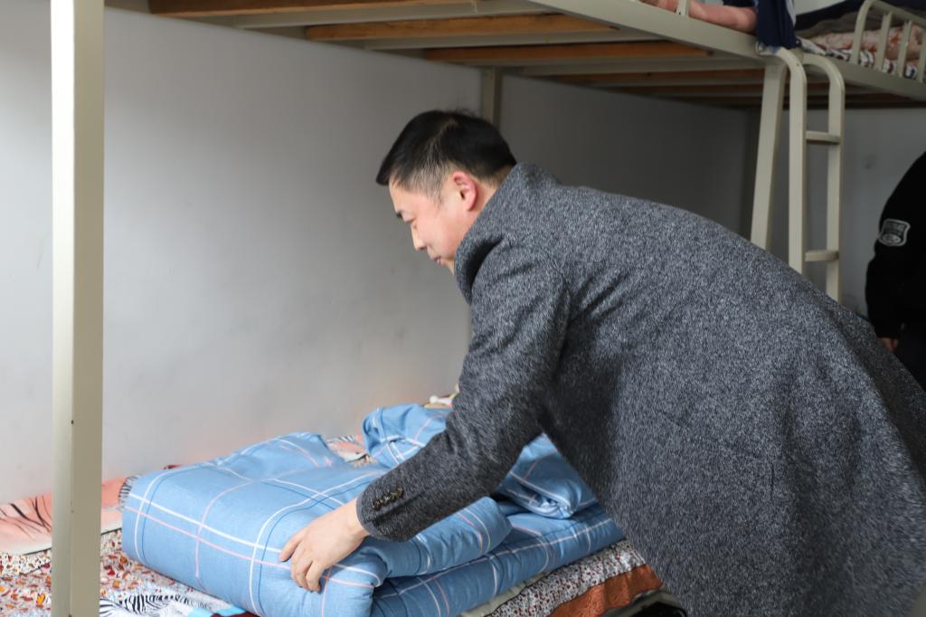 在检查过程中,大部分宿舍干净整洁,物品有序摆放,但仍有少数宿舍存在不足之处,存在被子叠放不整齐、物品摆放凌乱、部分电扇灰尘较多等现象。老师们针对不足之处一一进行了指导,殷书记还亲自向同学们示范了怎样叠好被子。