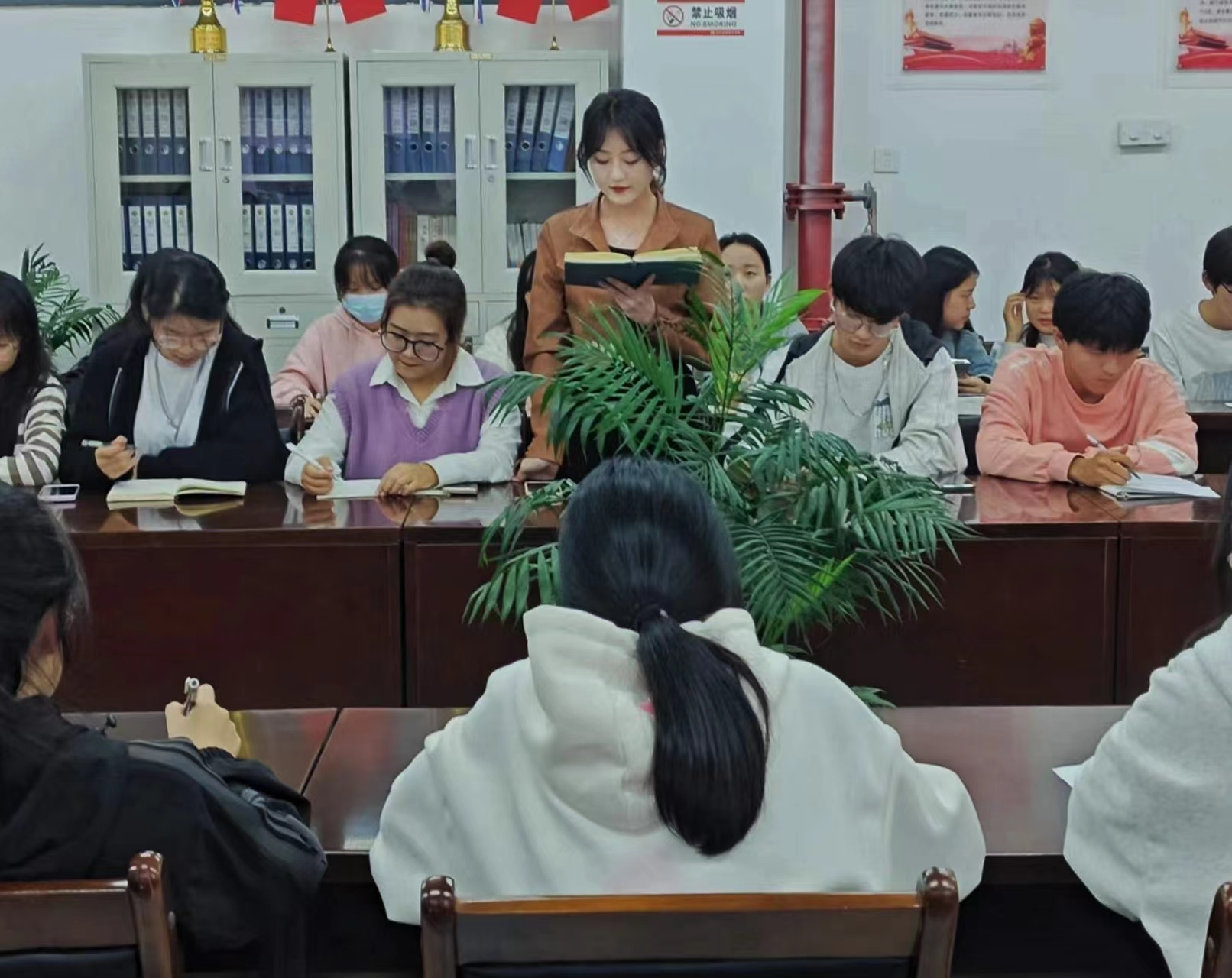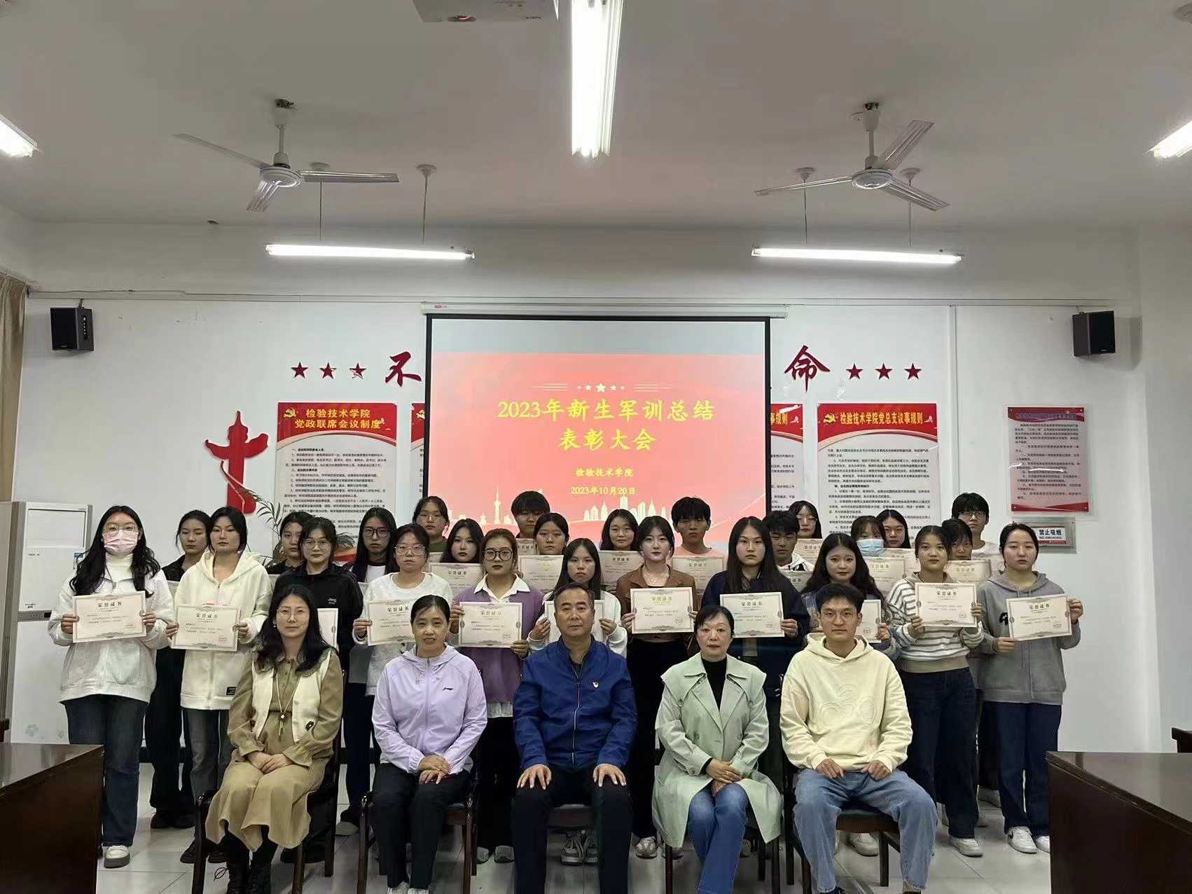 接着,刘业平宣读优秀学员、先进个人、优秀志愿者名单,领导老师向获奖的同学颁发证书,并依次合影留念。