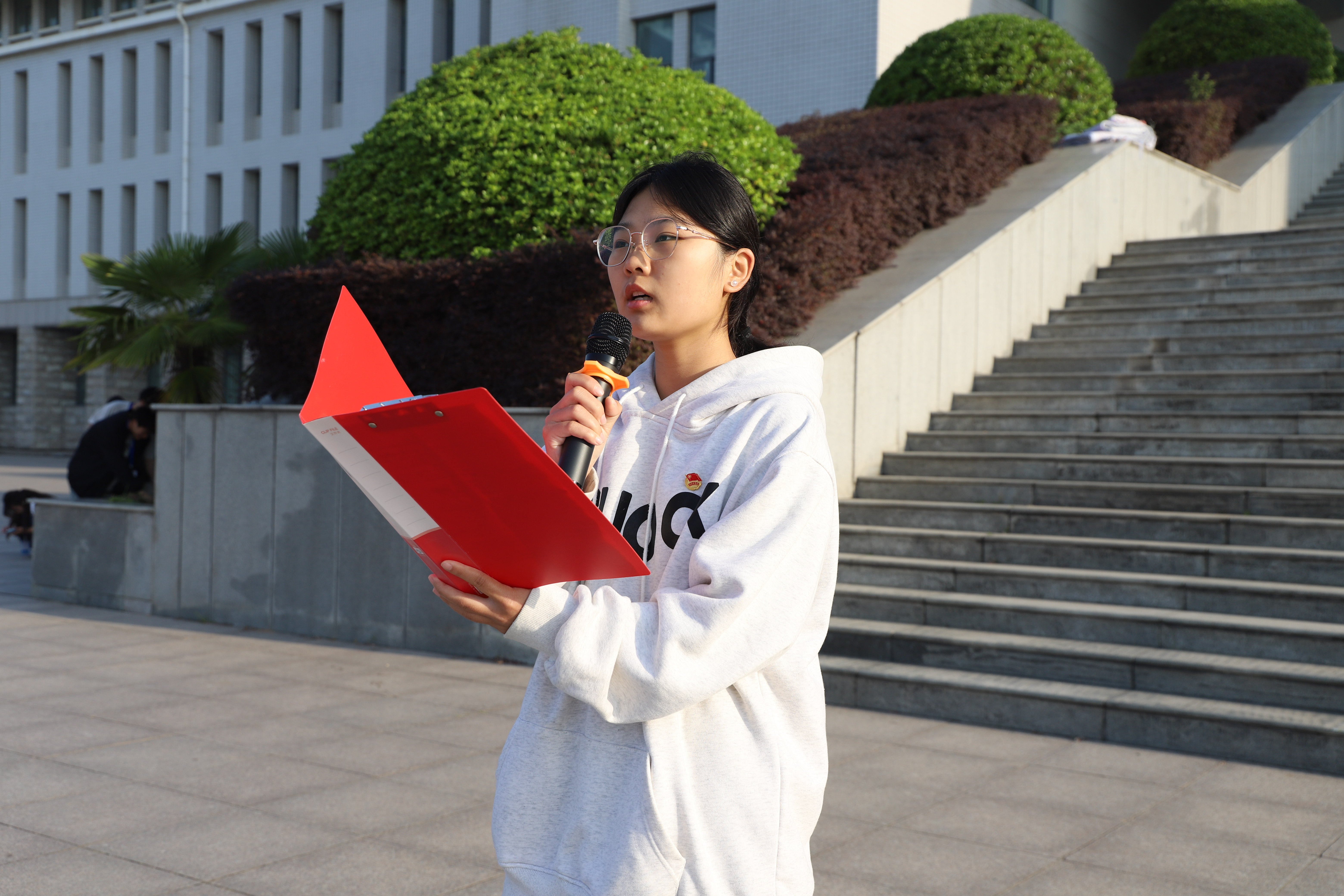 24级检验5班贾心如同学在发言中结合所学专业对匠心精神内涵进行了解读,号召同学们以此次升旗仪式为契机,将匠心精神融入学习,将爱国热情化为行动,努力学习专业知识,苦练技能,提升综合素质,做一名“传承匠心精神,勇担检验使命”的检验人,践行“强国有我” 的职业使命担当。