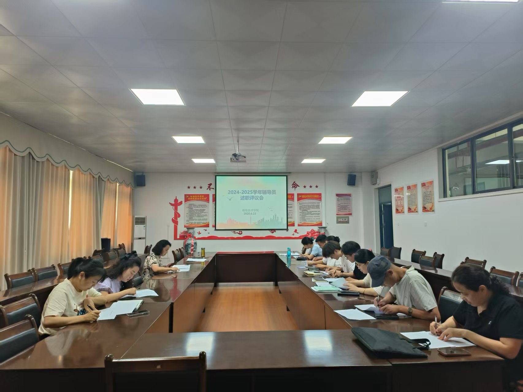 会议解读了学校《关于开展2024-2025学年度辅导员工作考核的通知》文件精神。10名辅导员班主任结合岗位实际,从思想政治教育、学生事务管理、党团班级建设、特色和创新工作等方面,进行了述职汇报。学院辅导员考核工作领导小组对辅导员工作进行了认真考评。