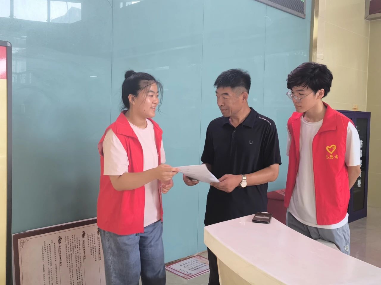 暑假七月,实践小队走进小区、医院、医疗卫生部门,随机给新生儿父母及其家属发放调查问卷,并认真讲解新生儿耳聋基因筛查过程及筛查意义。