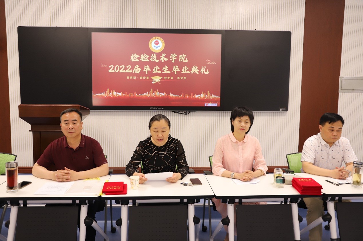 最后,学院党总支书记王虹讲话,王书记要求全体毕业生一要终身学习,二要永怀感恩,三要珍惜时间,四要珍惜友情。带上“检以求真,验以求实”的检验精神勇敢地走出去,把吃苦耐劳、砥砺奋进作为青春的“必修课”,勇于坚持、勇挑重担、勇克难关,以青春奋斗实现精彩人生!