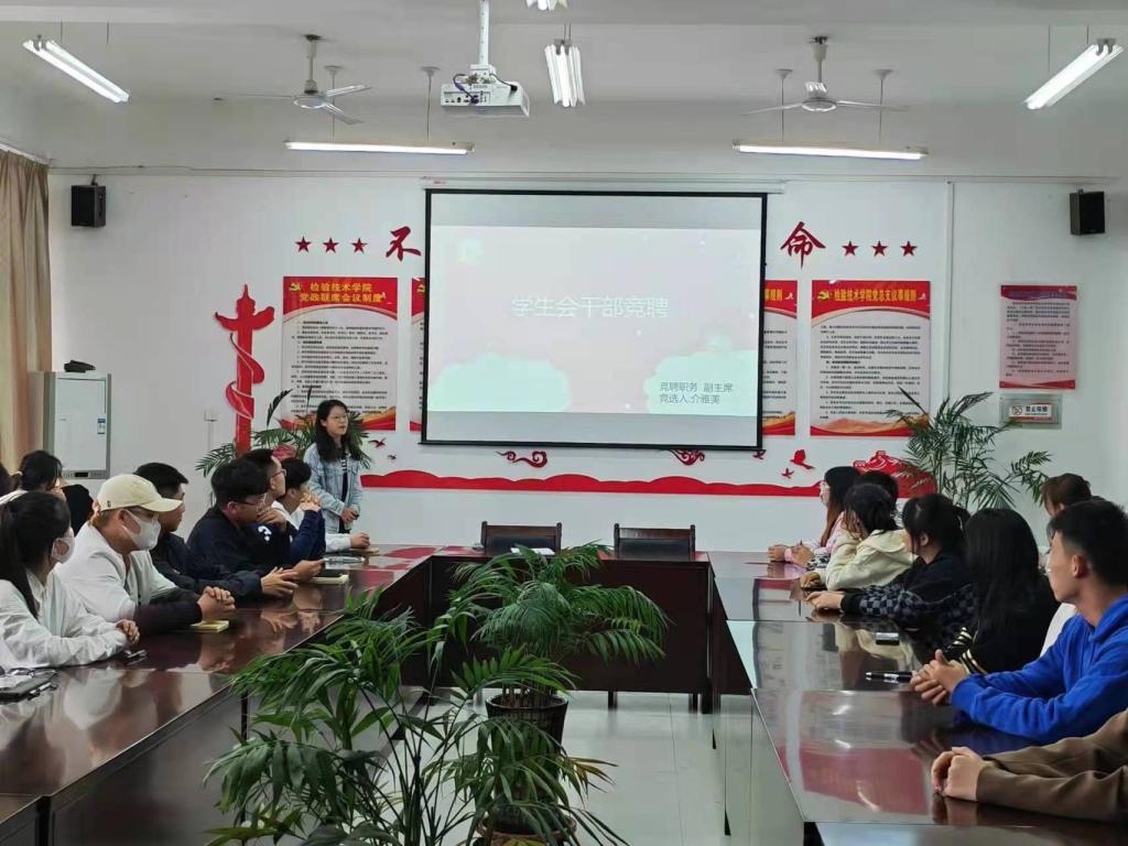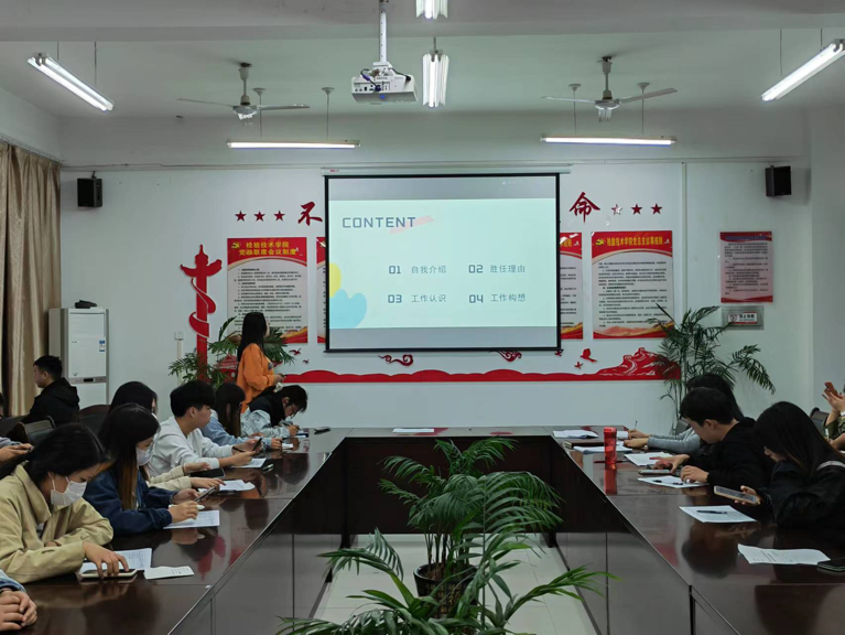 随后进行学生会各部部长竞聘选举。经过前期民主推荐、初步考核有16位同学参加竞聘。通过竞聘,团总支选拔出 名同学做为学生会部长,并将拟聘任名单及职务上报学院团总支、学生党支部,经学院党总支审核后公布。换届选举完成后,新一届的学生会干部考察期三个月,通过考核后正式上岗并颁发聘书。