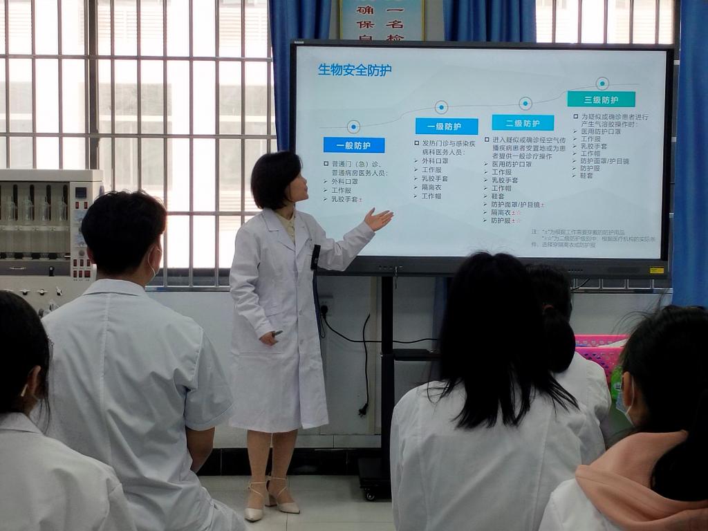 为了提高实验室工作人员的安全意识和个人安全防护能力,SUNBET申搏官方网站实验实训中心邀请临床检验教研室曹琳主任、谢诗雅老师和宋镜南老师于5月3日下午在7204实验室开展实验室《个人安全防护设备》讲座,实验实训中心全体教师及求实社学生参加了此次培训学习。