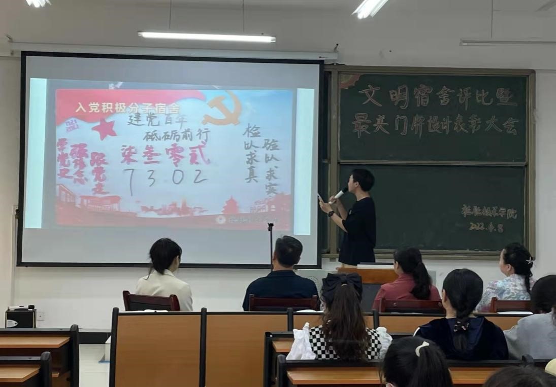 接着入党积极分子宿舍代表杨鑫浩、文明宿舍代表田羽及最美门牌设计宿舍代表任亚楠上台发言,分别围绕做一名优秀宿舍长、团结宿舍同学营造健康良好的生活学习环境、美化门牌设计、创建文明宿舍