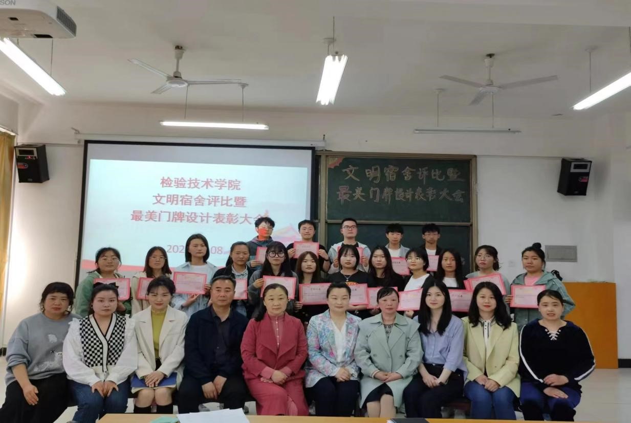最后,领导老师对获得荣誉的文明宿舍、优秀宿舍长、最美门牌设计者进行颁奖及合影留念。