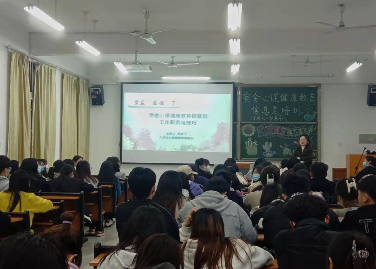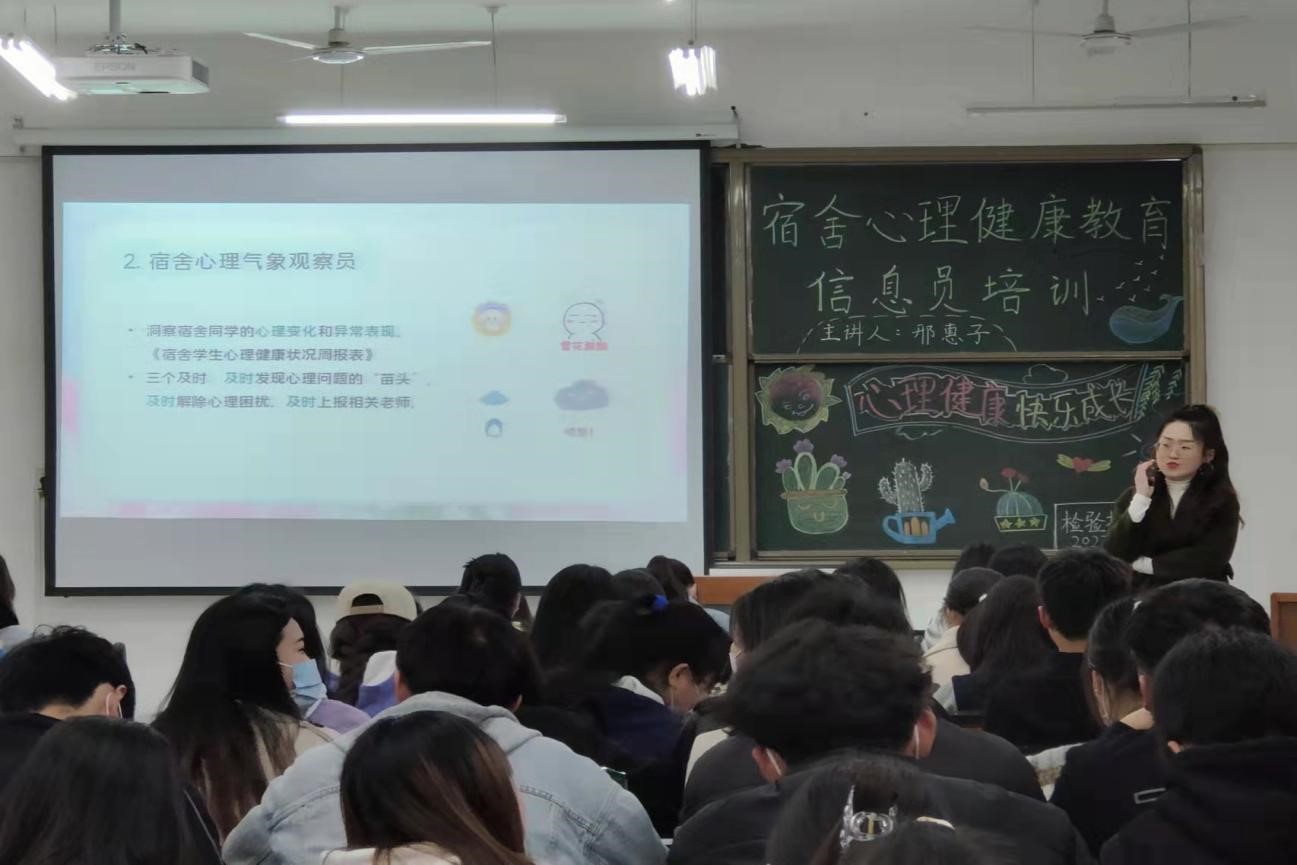3月31日,SUNBET申搏官方网站邀请学校学生处心理健康中心邢惠子老师在9211教室开展宿舍心理健康教育信息员培训,21级全体寝室长参加了培训。