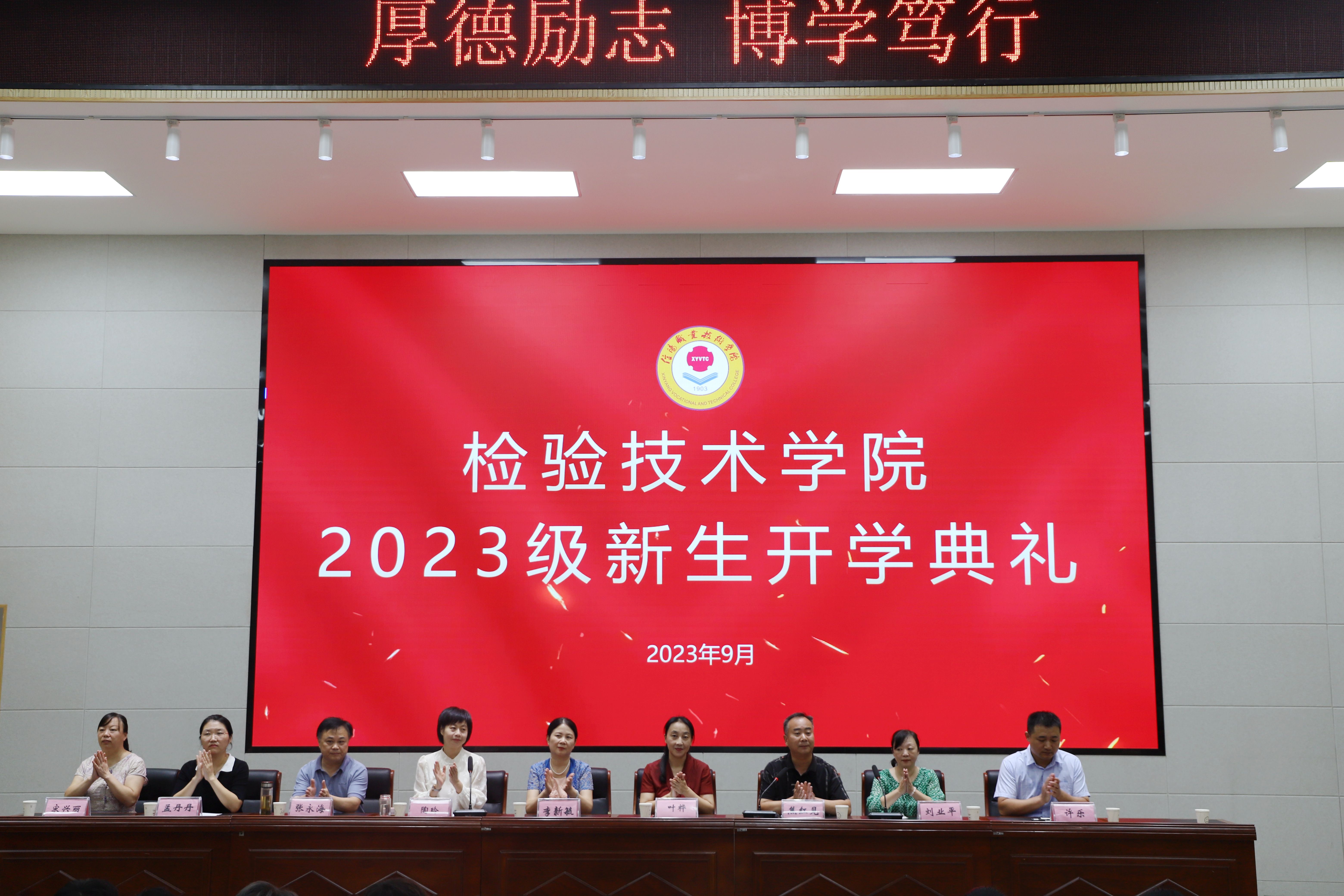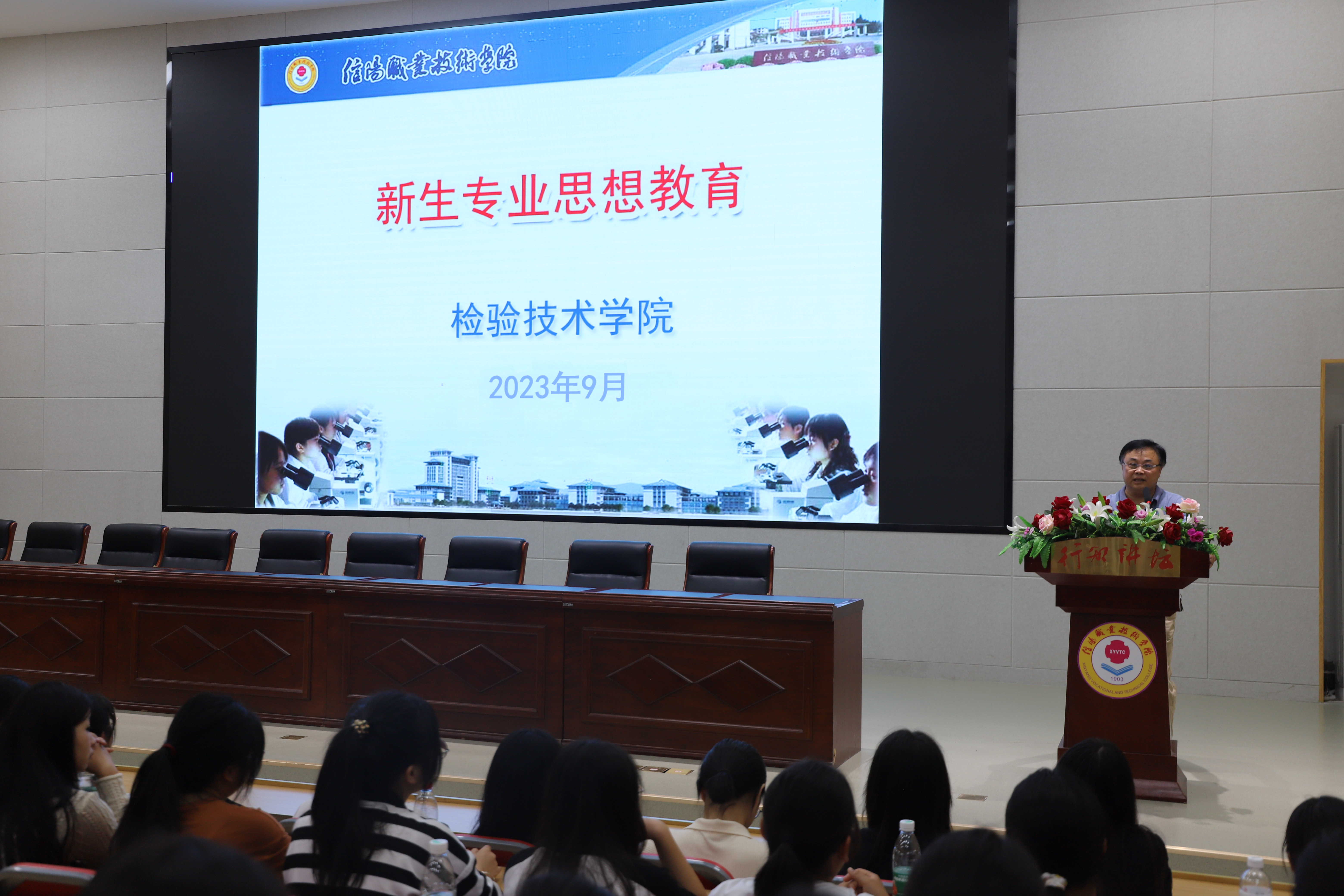 23级医学检验技术1班李怡静同学代表新生发言。初入校园她感受到学长学姐的热情接待,了解到学校诸多成就,她希望大家不忘初心,勇敢前行,不弃不馁,在信职检验这个崭新的舞台上大放异彩。