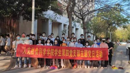 洁净溢校园,人文清扫行——新葡的京集团8814学生第二、四党支部开展校园清扫活动