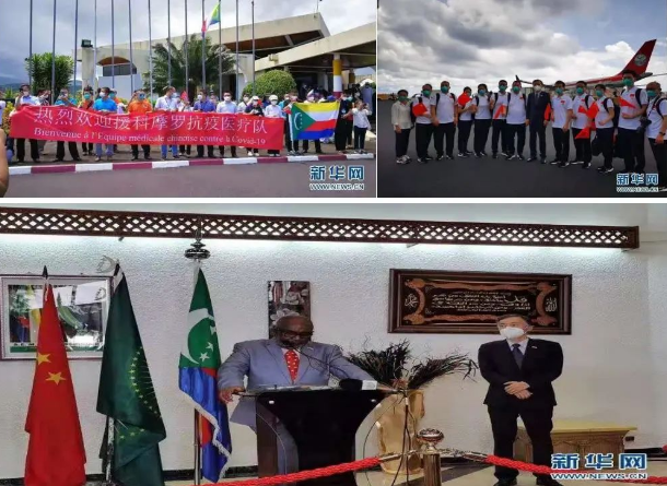 一个月后疫情进入了科摩罗,我国开始收到中国人民的支持和帮助。为了帮助我国防控疫情,中国先向科摩罗提供了一些医疗物资,后来中国政府安排医疗队和中国制造的疫苗到科摩罗去抗击疫情,帮助我国很快好起来。2021年3月17日,中国医疗队和疫苗平安到达科摩罗,政府和老百姓都给了他们一个热烈欢迎。科摩罗总统亲身去了机场接待中国援助科摩罗的新冠疫苗和医疗物资。