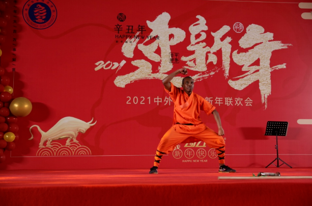 同月,我参加了学校举办的2021中外师生迎新年联欢会。2021年元旦,我参加了研究生元旦联欢晚会。我代表留学生发言,为现场师生表演了少林功夫和唱歌。