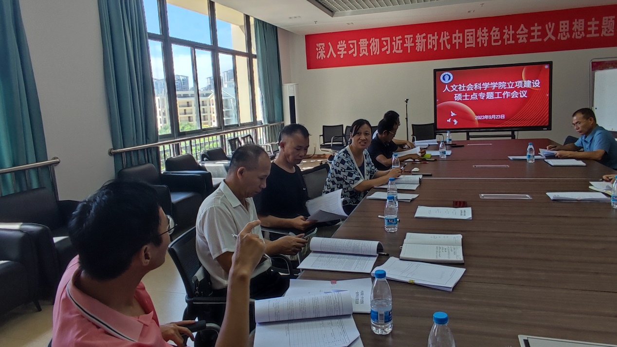2023年9月23日上午,新葡的京集团8814在人文楼512会议室召开立项建设硕士点专题工作会议。此次会议旨在充分论证相关材料,进一步凝练学院学科建设思路,阶段性推动立项建设硕士点工作进程,打通学科、科研与教育教学、人才培养的关系。会议由学院院长王志峰教授主持,学院党委副书记黄宇志、学院学术委员会委员、硕士点骨干成员出席会议。
